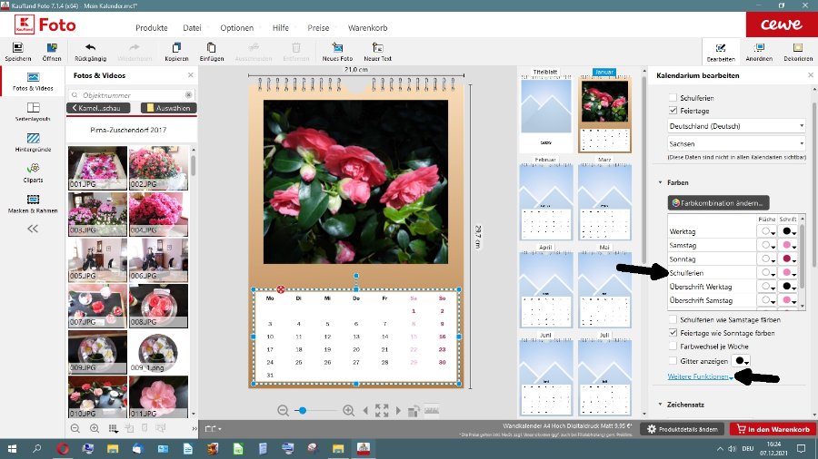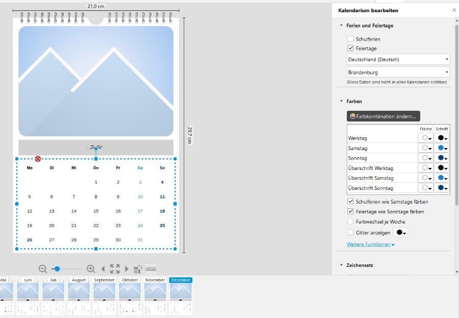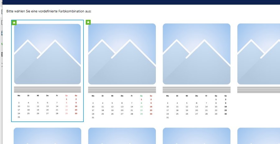 Das konnte ich so nicht nachstellen. Welche Schriftart verwendest Du?Eine Ergänzung habe ich noch. Unter Weitere Funktionen gibt es auch noch die Möglichkeit, angelegte Farbkombinationen zu speichern und später wieder zu laden. Inzwischen ist Dein erster bestellter Kalender sicher fast fertig und abholbereit? Magst Du berichten, ob er wie gewünscht produziert werden konnte? Liebe Grüße