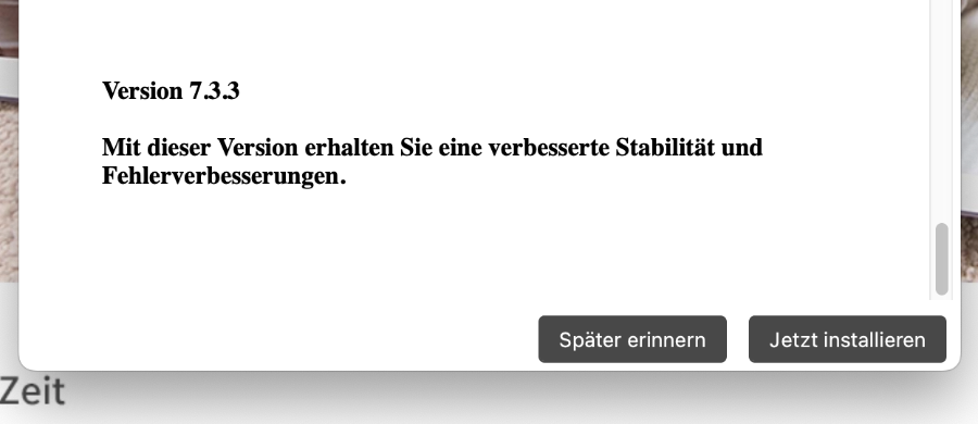 ich habe soeben die neue Version installiert, wollte mal die Neuerungen ausprobieren. Aber ich habe die Version 7.3.3 (!) bekommen. Die steht noch gar nicht in den Listen. ??? nur wer fragt, kann etwas lernen