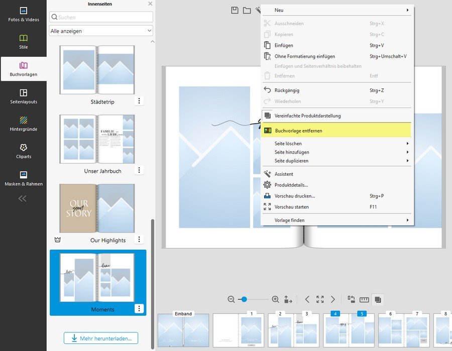 Künftig gibt wird es wohl die Möglichkeit geben, auch mit der Kontextmenü-Option die Designvorlagen pauschal von allen Buchseiten zu entfernen. Wer ist online?Mitglieder in diesem Forum: 0 Mitglieder und 24 Gäste