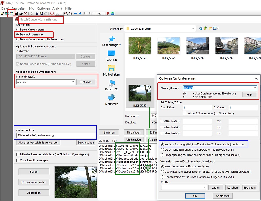Re: Foto Visuell selektieren - Reihenfolge best. - SpeichernHallo Josefia, danke - wieder was gelernt - sowohl die Idee mit dem Vorschaufenster als auch das Umnummerieren in irfanview.