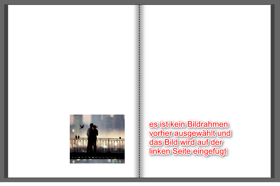 Vertsehe ich sie dahingegend richtig, dass Sie folgendes bemängeln: wenn man ein bereits eingefügtes Bild im Buch markiert und kopiert und es anschließend in bespielsweise einem leeren Bildfeld einfügen will, dann verändert sich die Größe und die Position dieses Bildfeldes dahingehend, dass es die des kopierten Objektes annimmt. Zur Verdeutlichung hier noch zwei Screenshots: Der zweite Fehler ist meines Erachtens, dass - wenn nichts selektiert ist - immer auf der linken Seite eingefügt wird (wie Josefia oben schreibt). Diesen Punkt kann ich nachstellen und auch nachvollziehen. Liebe Grüße