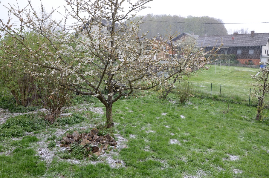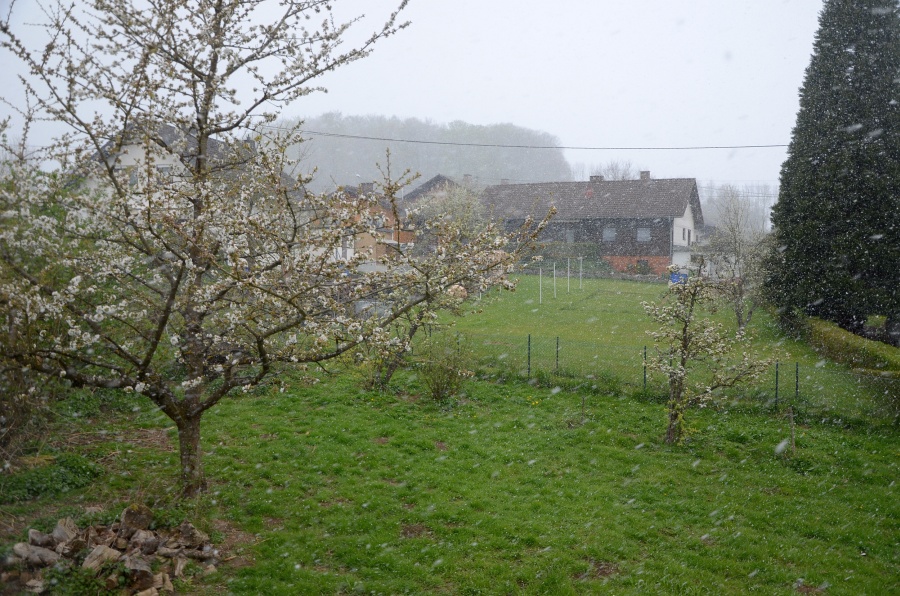 Schneefall auf die diesjährige Kirschblüte Mittags liebe Grüße
