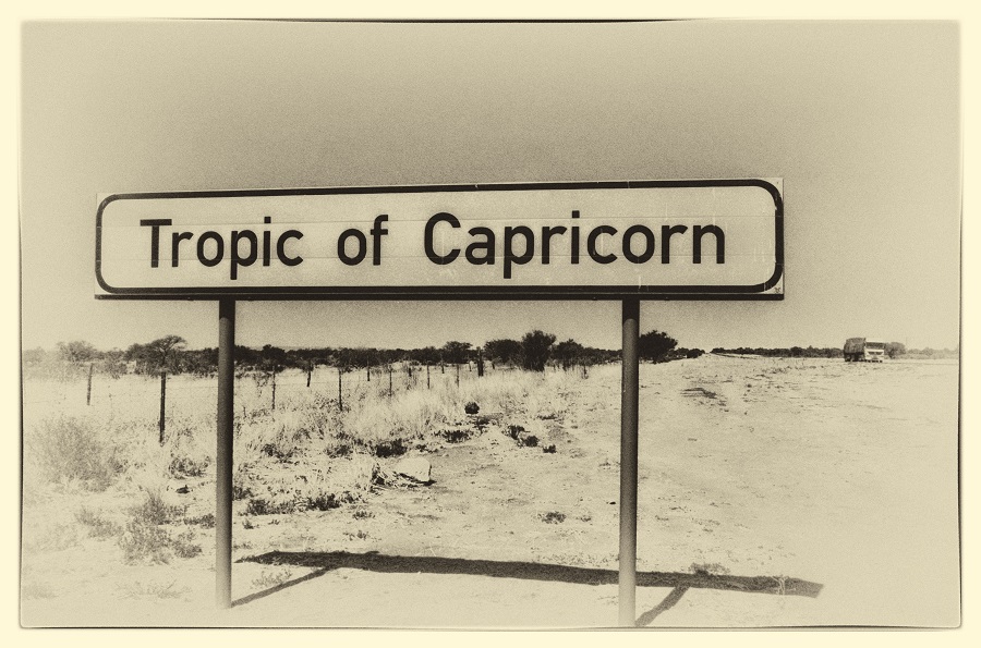 Fährt man von Windhoek auf der B1 Richtung Süden, kommt man zwischen Rehoboth und Kalkrand unweigerlich an diesem Hinweisschild vorbei, das darauf aufmerksam macht, daß man nun den südlichen Wendekreis überschreitet. Hier anzuhalten, ist ein Muß für jeden Touristen, das enstprechende Foto mit oder ohne selfie inbegriffen.