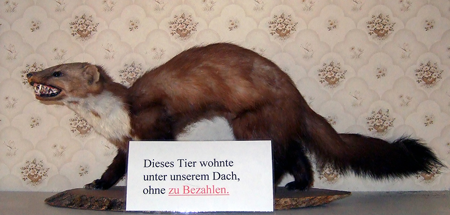 Re: Challenge 03/2018 • Küssen verboten!Der gezeigte Marder hat die Besitzer eines Hotels in Bad Krozingen über einen längeren Zeitraum zur Verzweiflung getrieben, da er nachtaktiv, wie er nun mal ist, das Vermieten der oberen Zimmer unmöglich gemacht hatte.