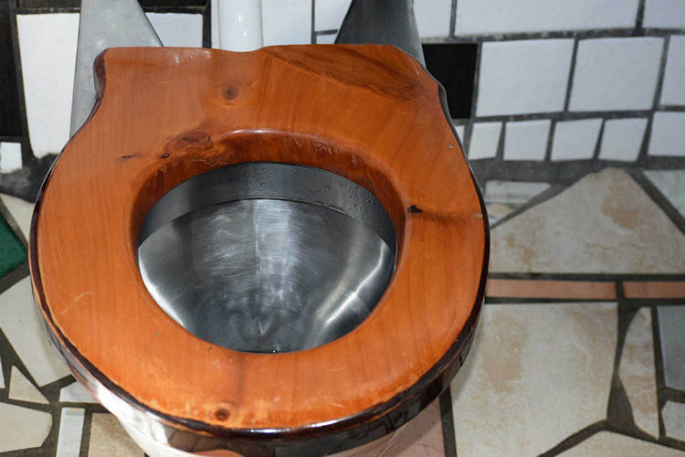 Re: Challenge 06/2020 • AuszeitEin stilles Örtchen für die Auszeit. Aber ein ganz besonderes Örtchen, die Toilettenanlage hat kein Geringerer als Friedensreich Hundertwasser kreiert. Gesehen und benutzt in Kawakawa (Neuseeland)