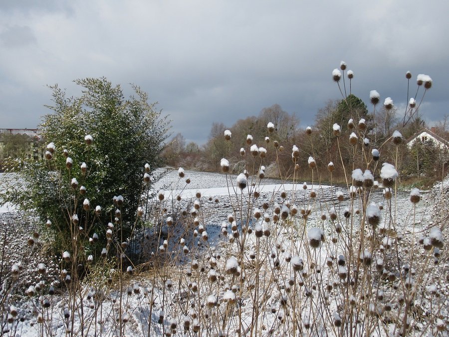 Silber-Distel Re: Challenge 03/2021 • Zwei Mal täglichGestern hatte die Natur über Nacht nochmals ein Schneekleid bekommen, welches wir beim Morgenspaziergang bewundern konnten.