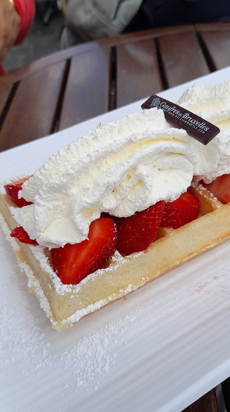 Echte belgische Waffeln, mit Erdbeeren und viel Sahne - mmmmmh waren die lecker