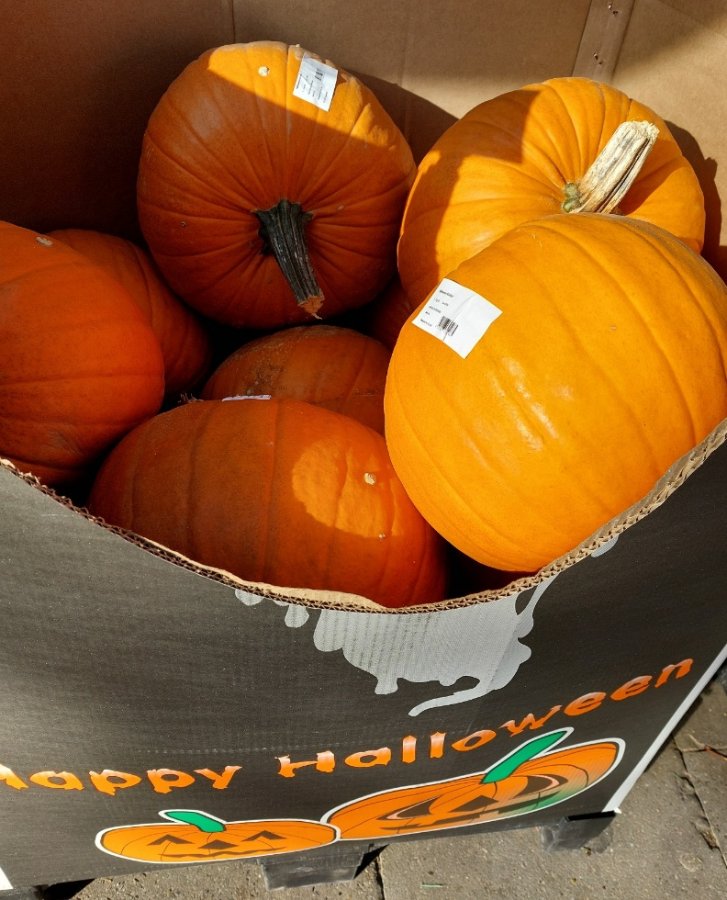 Re: Halloween Special - Woche 4Im Supermarkt stehen große Kisten mit großen Kürbissen, die sich bestimmt gut beschnitzen lassen.