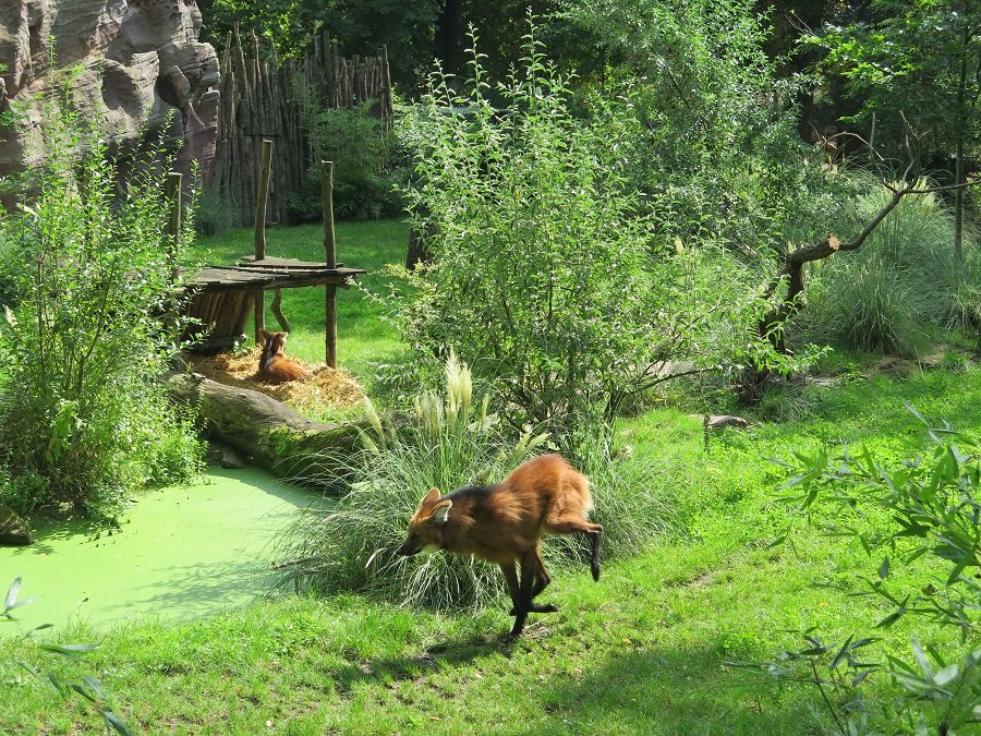 Re: Challenge 03/2022 • Bilder, die man riechen kannEr ist in einigen Zoos daheim, und immer kann man ihn schon von weitem riechen. Der Geruch seines Urins soll dem von Marihuana ähneln und schon Polizeieinsätze ausgelöst haben. Ich habe diesbzgl. keine persönlichen Erfahrungswerte und nenne ihn einfach nur Stinkewolf. Wäre er nicht so ein Hübscher, würde man wohl auch gar nicht an seinem Gehege verweilen, sondern genau das da tun. Ja genau, davonlaufen! Aber nun hilft´s nichts, hier isser, der Mähnenwolf: