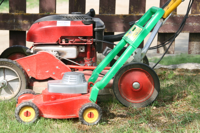 Black &White :D Re: Challenge 03/2012 • GegensätzeZwei "etwas ungleiche" Rasenmäher warten auf ihren nächsten Einsatz.