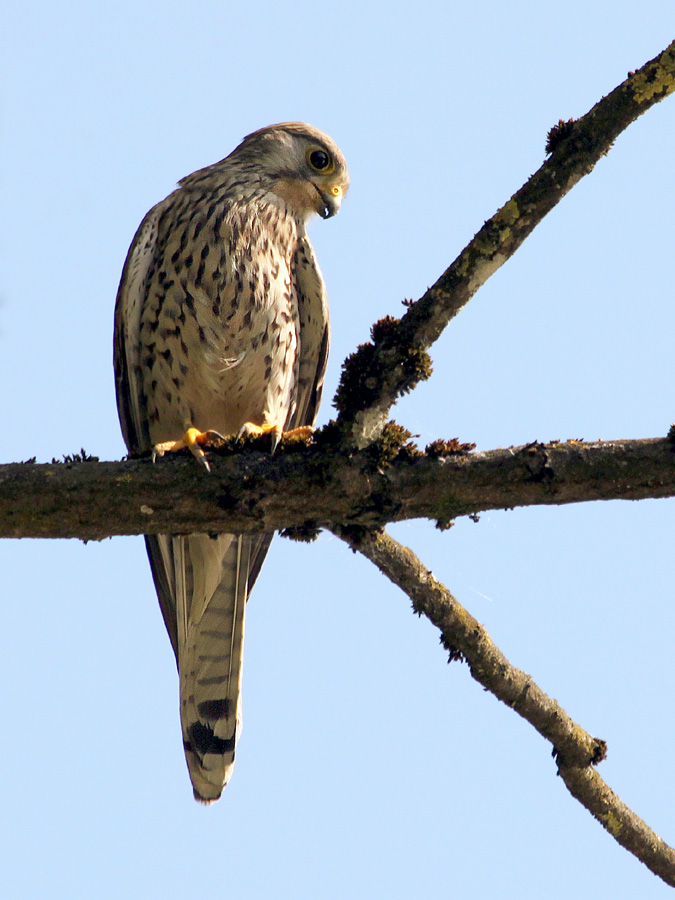 Re: Challenge 06/2013 • Mein persönliches LieblingsbildLetzte Woche beim Waldspaziergang habe ich ein neues Lieblingsbild "geschossen". Bisher bin ich noch nie einem Turmfalken begegnet, ich habe mich sehr darüber gefreut, dass er (oder besser sie) sich genau auf einem dürren Ast oberhalb meines Spazierwegs niedergelassen hatte und mir ein paar Augenblicke Zeit ließ, die Aufnahme zu machen.