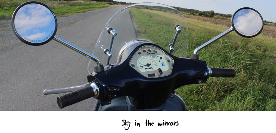 Re: Challenge 10/2014 • SpiegelbilderDieses Foto entstand spontan bei einer sommerlichen Vespa-Ausfahrt. Ich wollte die Ästhethik des Rollers und auch den schönen Himmel festhalten. Spiegel sei dank :-)