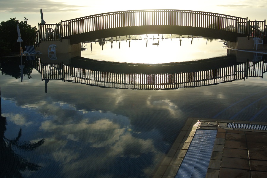 Re: Challenge 07/2016 • Spieglein, Spieglein...Die Brücke über den Pool spiegelt sich wieder bei Sonnenuntergang