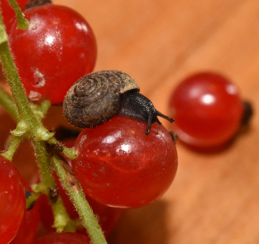 Auch wenn es nicht so aussieht, hier hat sich doch etwas bewegt. Das Schneckchen hat sich vorübergehend zurückgezogen, als wir ihm mit zwei Fotoapparaten auf die Pelle gerückt sind. Aber die die Johannisbeere hat wohl so gut geschmeckt, dass es sich wieder blicken lies liebe Grüße