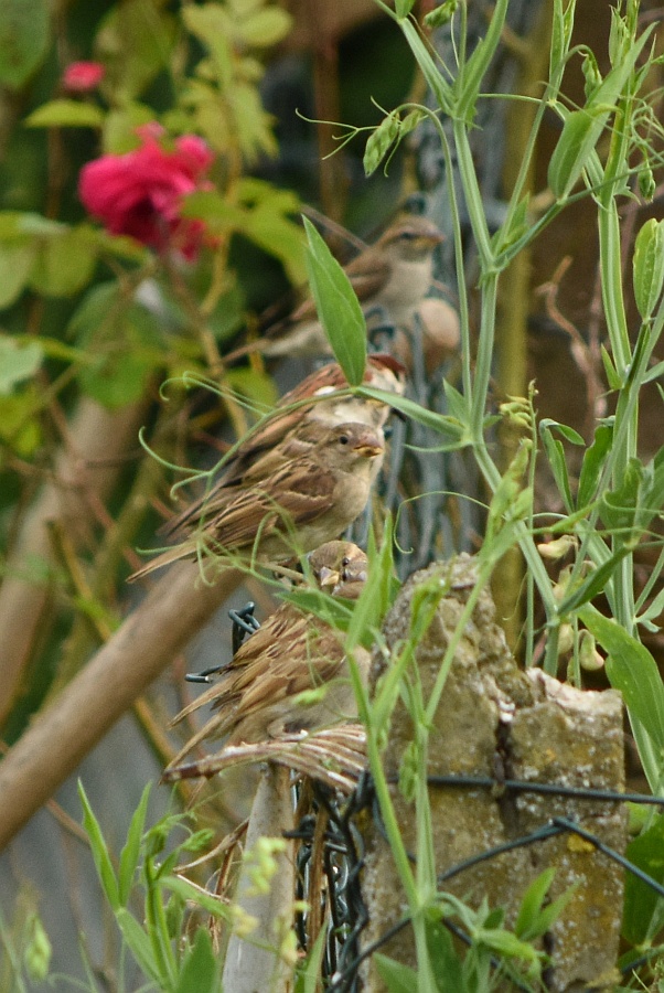 Und bei den Spatzen vergnügen sich inzwischen ganze Clans am Futtertrog und auf dem Holzzaun. Liebe Grüße