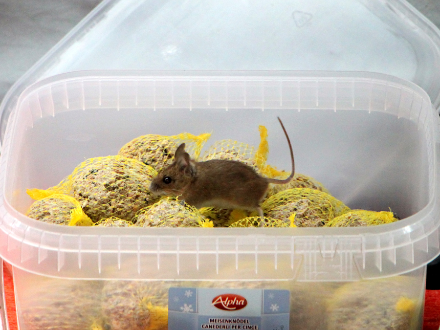 Das passiert, wenn man auf der Terrasse die Meisenknödel nicht abdeckt. Dem Mäuschen hat es wohl richtig gut geschmeckt. Liebe Grüße