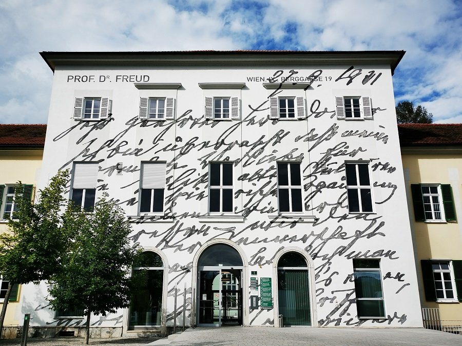 Re: Challenge 07/2020 • Ist das Kunst?Ein Beispiel für "Kunst am Bau": Die Fassade eines Krankenhauses dekoriert mit einem handschriftlichen Brief von Sigmund Freud.