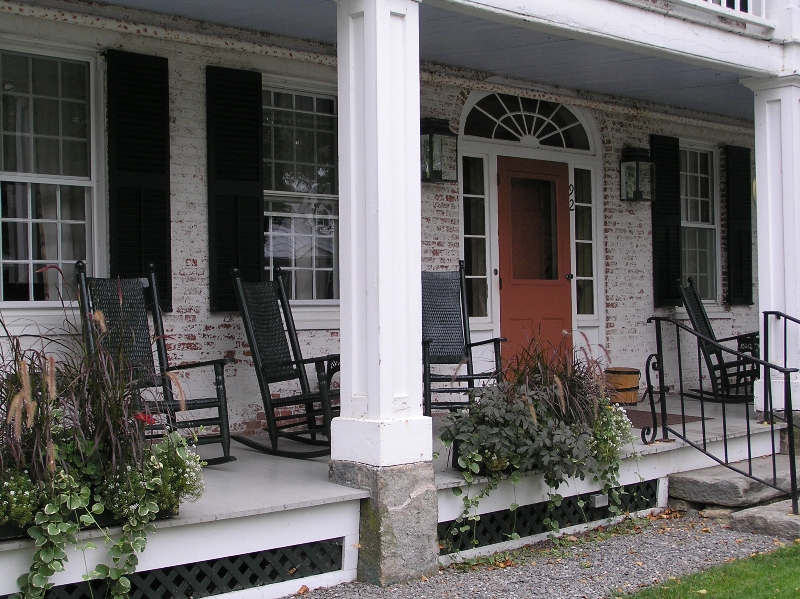 Man kann auch innerhalb von Gebäuden oder Passagen seines Weges gehen. Und man kann auch bei schönem Wetter mal drinnen Platz nehmen, z.B. um im Schatten oder im Kühlen zu sein. Und wann ist etwas "draußen" und wann "drinnen"? Ist eine Sitzgelegenheit zwangsläufig "drinnen", nur weil ein Dach drüber ist und die anderen Seiten offen sind?Re: Challenge 06/2020 • AuszeitSchaukelstühle auf der Veranda in einer Kleinstadt in Vermont, USA