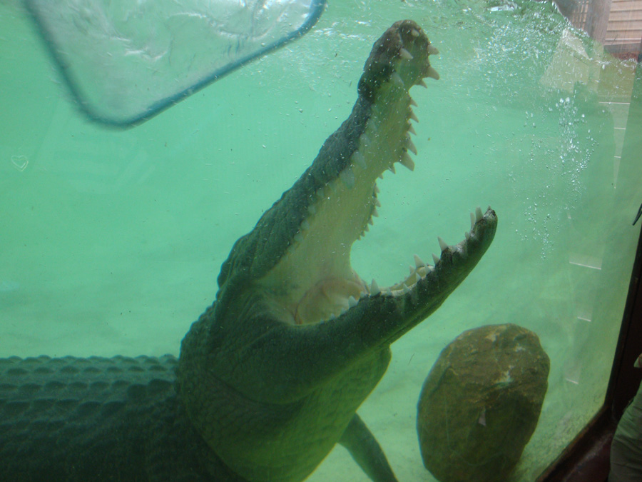 Ich habe gerade das Gegenteil dazu - ich war sehr froh, dass da eine dicke Glasscheibe dazwischen war! (Auch wenn die Australier ihr Salzwasserkrokodil verniedlichend "Saltie" nennen Liebe Grüße
