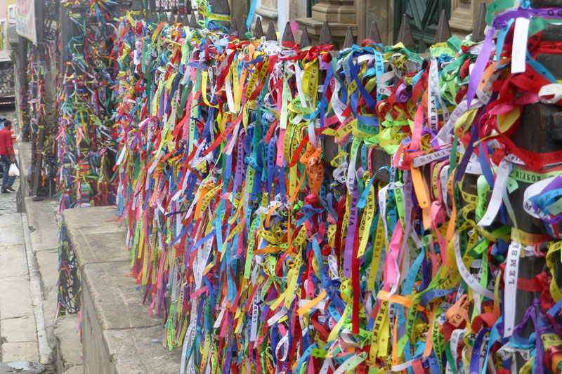 Re: Challenge 01/2014 • FarbenprachtDiese bunten Bändchen hängen vor einer Kirche in Soa Paulo. Sie werden von Gläubigen gekauft und dort angebracht, um einen Wunsch kundzutun.