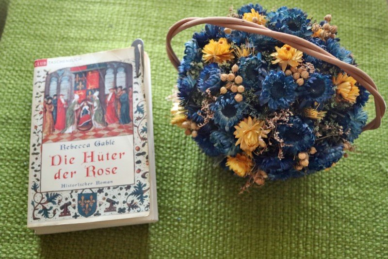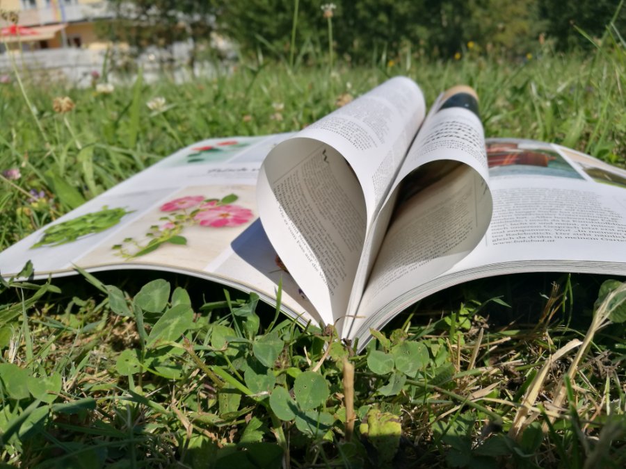 Arrangieren Sie eine Blume sowie ein Buch und halten Sie dieses Arrangement fotografisch fest. Die beiden genannten Bildelemente sind zur Erfüllung der Aufgabe erforderlich und sollten klar erkennbar sein. Weitere Bildelemente können frei gewählt werden.