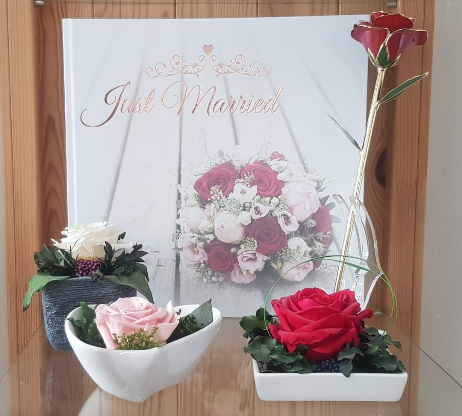 Re: Challenge 04/2021 • Stilles ÖrtchenDas ist das Hochzeits-Fotobuch meiner Tochter mit dem getrockneten Brautstrauß.