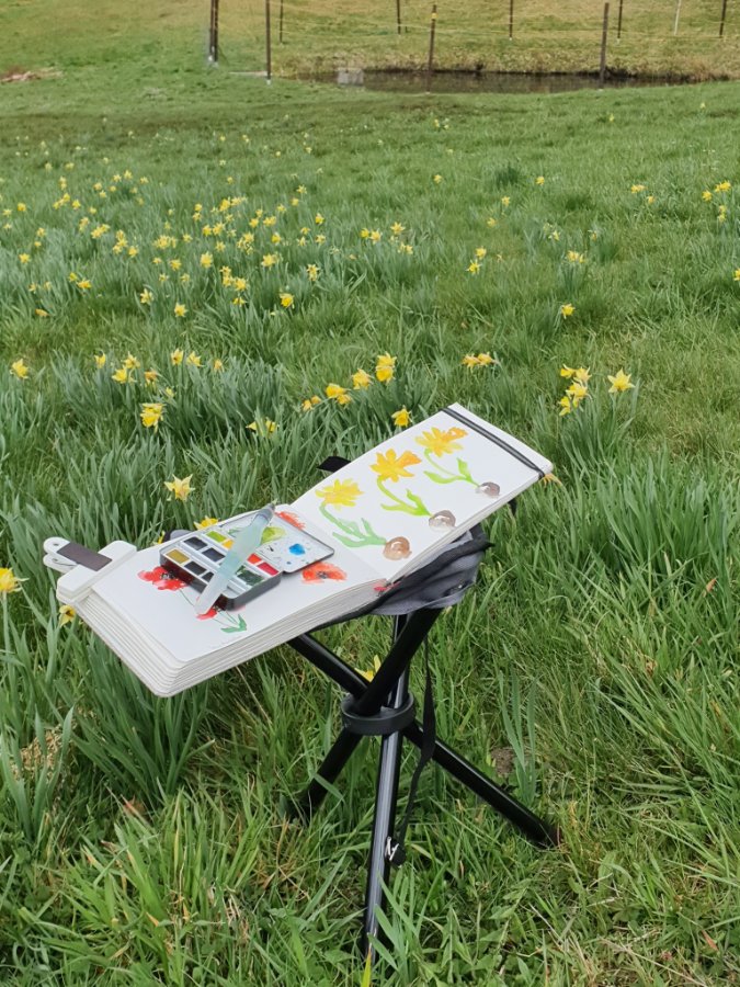Ja, sie blühen wunderbar. Und so ganz langsam kehrt der Frühling wieder zurück, dann ist es bei Euch im Norden bestimmt auch bald soweit! Re: Challenge 04/2021 • Stilles ÖrtchenMein "stilles Örtchen" habe ich heute auf einer Wanderung inmitten einer Wiese voller Osterglocken gefunden und mein Skizzenbuch arrangiert