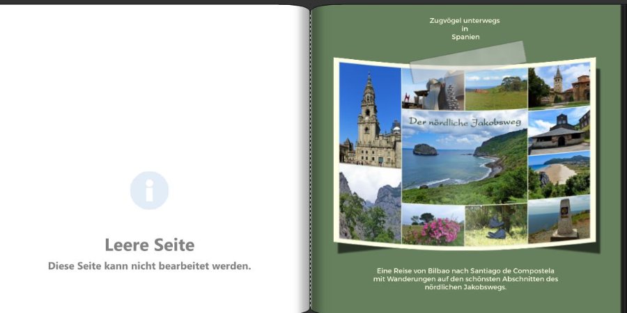 Re: 28. November | Kategorie: KreativesIch habe mal das Schmutzblatt mit Fotos analog einer Postkarte gestaltet, die Reise auf dem Camino del Norte führte bis zum Kap Fistere und da es ein Wanderurlaub war, fand ich das Denkmal des Wanderschuhs am Ende des Camino einen passenden Abschluss