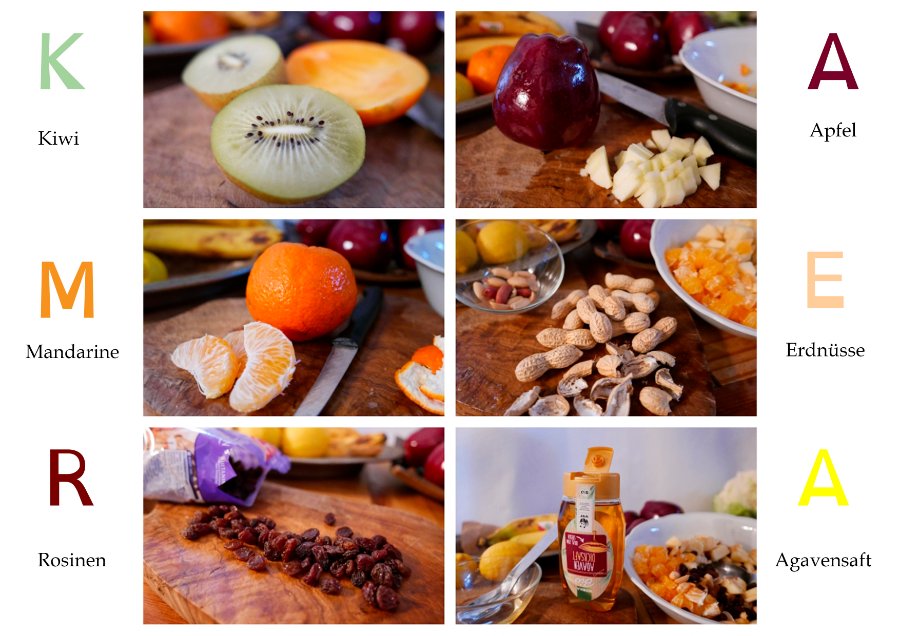 Re: 29. November | Kategorie: FotografieHallo Sylke und alle Foris, ich muß doch noch mal nachfragen. Ist es o.k. die einzelnen Bilder als eines zusammen zu fassen, oder müssen es 6 einzelne Fotos sein? Mein Obstsalat ist mittlerweile verputzt, so das ich keine neuen Fotos machen kann und obwohl andere das ja auch als Zusammenfassung gemacht haben, bin mir etwas unschlüssig, ob ich das richtig gemacht habe. Es sind ja unterschiedliche Varianten zu sehen.