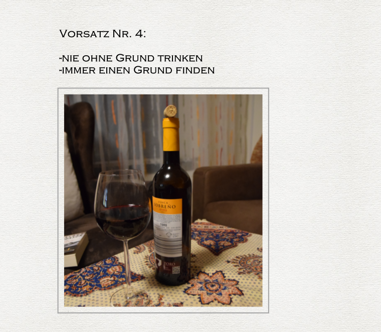Ihre heutige Aufgabe besteht darin, Ihre Vorsätze aufzuschreiben, in Szene zu setzen und fotografisch festzuhalten. Oh, dann können meine 2 Beiträge bitte gelöscht werden, dann mache ich das neu! Liebe Grüße,