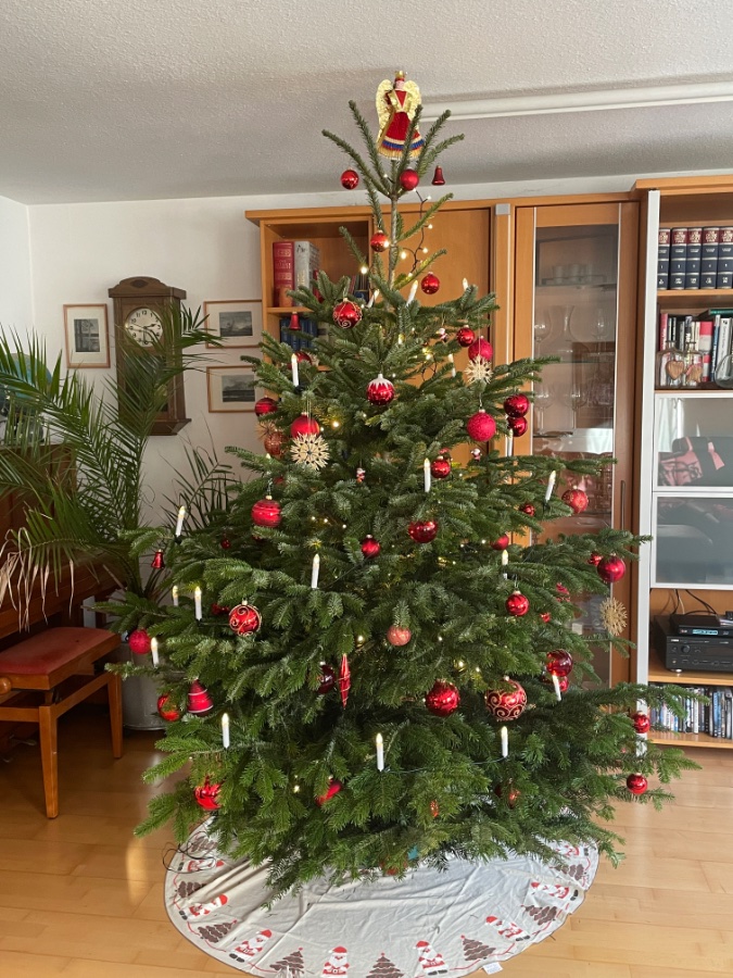 Koala123 Re: Adventsspecial: Vierte Advents-ChallengeWir haben immer noch einen klassischen Christbaum mit einem Rauschgoldengel auf der Spitze. Er wurde heute erst geschmückt und ist gerade eben fertig geworden.