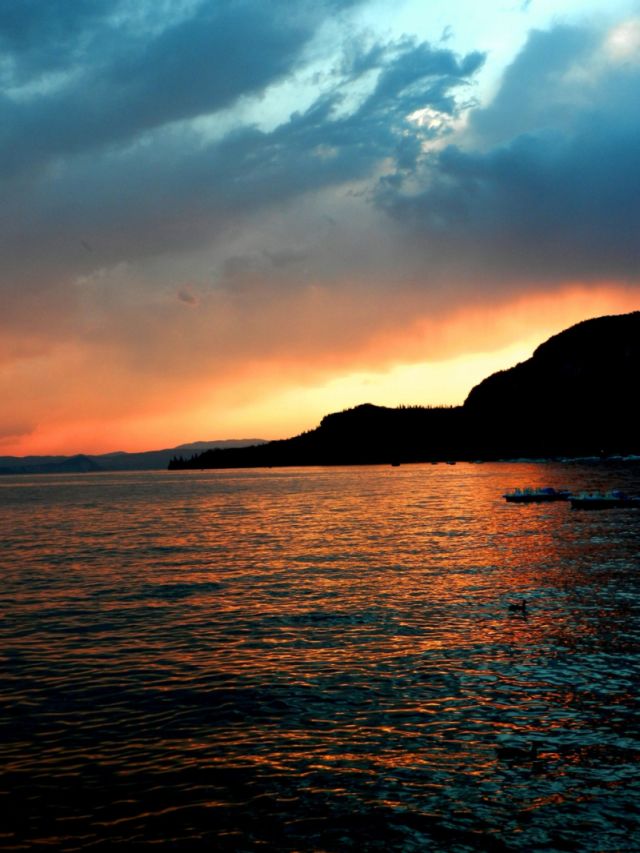 Teneriffa. Die Berge sind ganz dunkel gefärbt von den Schatten der Wolken. Bei uns würde man alles verstauen und wetterfest machen, das Haus würde man nicht mehr verlassen. Er war schön von der Liege am Pool dem Wolkenspiel zu zuschauen. Kamera Nikon 1 J2; Blende F/5; ISO 100; Bel. 1/125 Sek.;BW 11mm