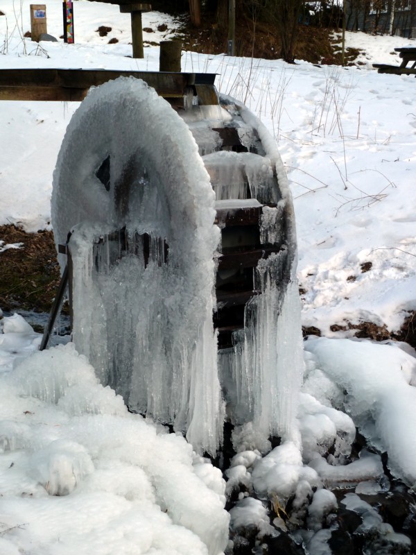 Das Wasserrad hab ich unterwegs gesehen und fand es schön. Der Engel harrte im Schneegestöber aus. Viele Grüße Meimar14