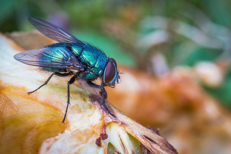 Zurück zum Thema. Schillernde Fliege auf einem angefressenen Apfel. Re: Challenge 08/2017 • Da bewegt sich etwas ...Ich hab drei Bilder meiner Gartenbewohner, die ich ganz gerne mag und passend zum Thema fand, deswegen hab ich sie ausgewählt.