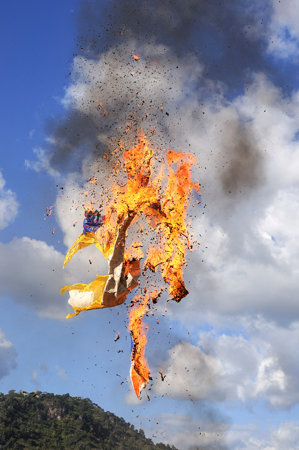 --------------------------------------------------- Re: Challenge 10/2018 • Stürmische ZeitenMeist im November jeden Jahres in Abhängigkeit von der Mondphase findet in Taunggyi in der Nähe des Inle Lakes das ca. einwöchige Heißluft Ballonfest statt. Es ist als Wettbewerb gestaltet, bei dem die Gruppen mit selbstgebauten riesigen 3-8m Papierballons, zum Teil in Form von Tieren, versuchen Punkte für Form, Farbe, Flugeigenschaften und Koordination zu ergattern und den Geldpreis für den Sieg zu erhalten. In den Ballons werden eine Art Teelichter angebracht, die warme Luft bringt dann diese Papiergestalten zum Aufsteigen. Leider gab es plötzlich einen kleinen Sturm und so entzündeten sich diese Kunstwerke, die Erbauer mußten viele Tränen vergießen, hatten sie doch das ganze Jahr daran gearbeitet.