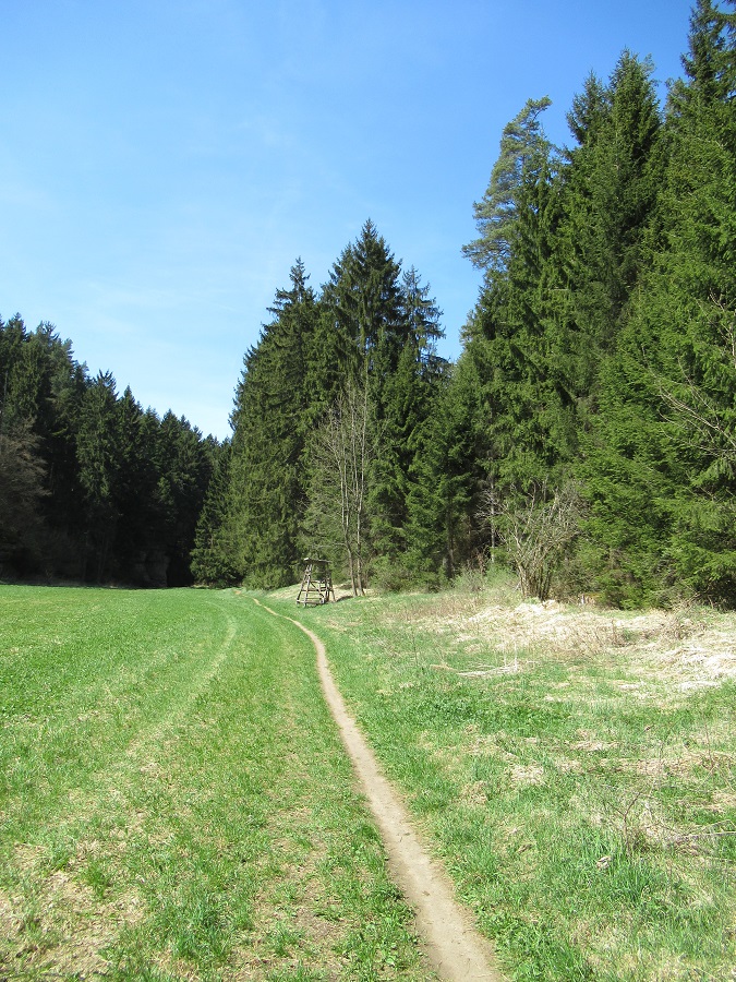 Spica Re: Challenge 07/2019 • Bis ans Ende der WeltDer kleine Pfad am Wiesenrand führt am Jägerstand vorbei und nicht ans Ende der Welt sondern direkt in den Wald