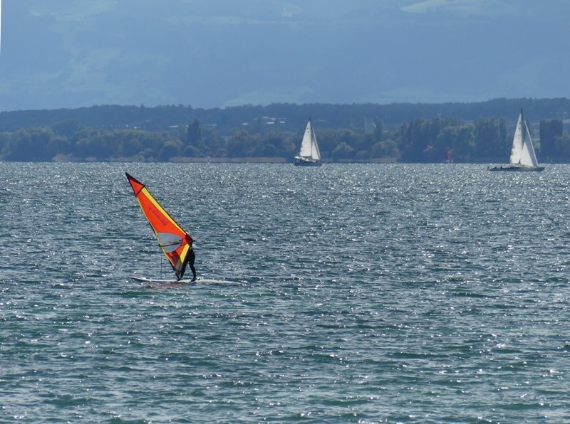 Kunigunde Re: Challenge 10/2020 • FarbklecksEs war aber zum Glück nicht immer Grau in Grau, am Sonntag kam dann auch mal die Sonne durch und bei einer leichten Brise waren viele Segelboote und auch ein paar Surfer auf dem Wasser unterwegs.