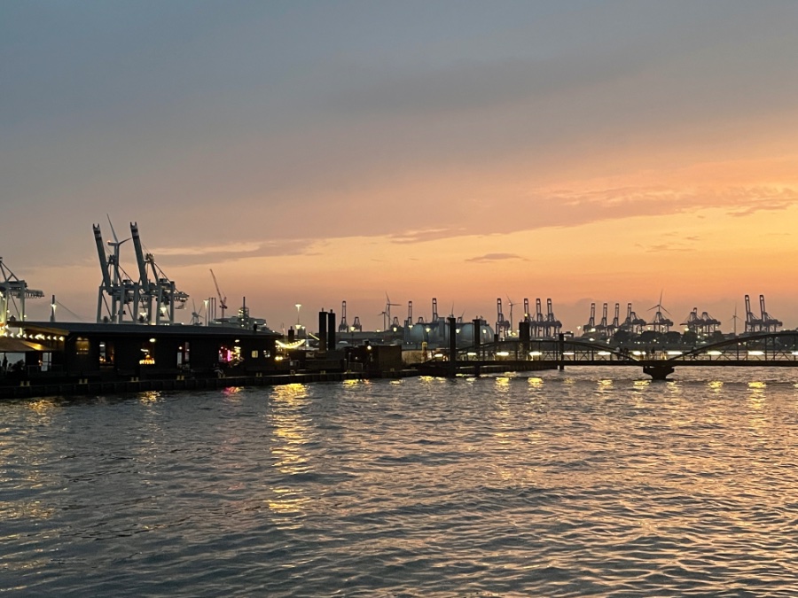 Re: Die Sommer-Foto-Challenge 2024Einen hätt ich noch, einen schönen Sonnenuntergang in Hamburger Hafen: