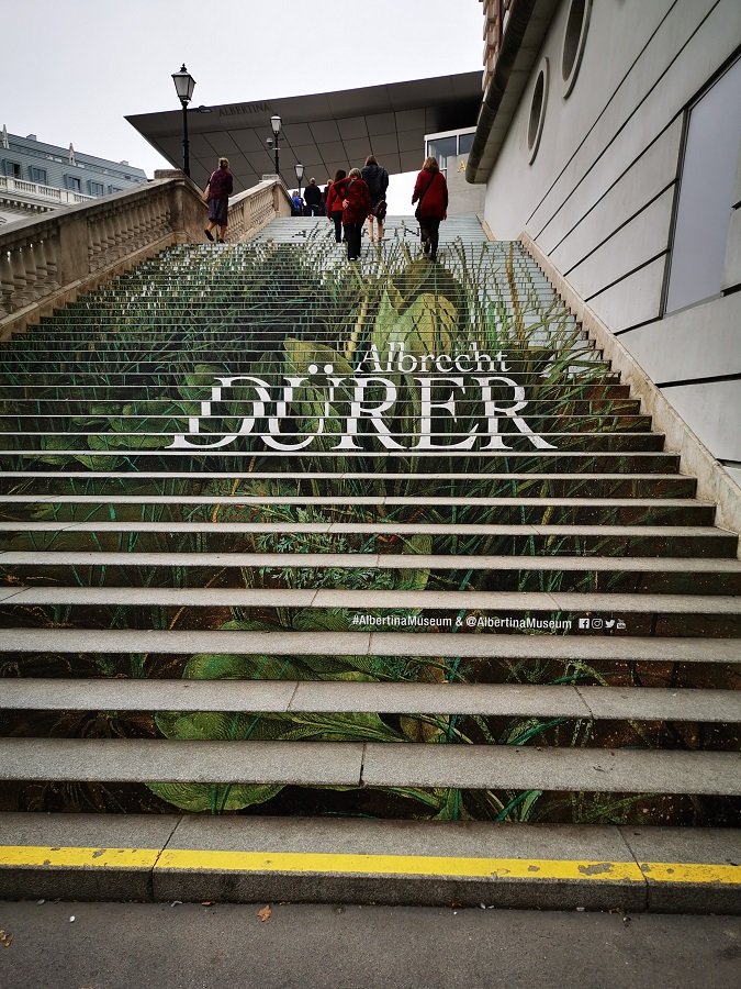 Re: Challenge 05/2021 • Hoch und höherDeine Treppe hat mich gerade an etwas erinnert! In der Albertina in Wien wird die Treppe auch immer passend zur jeweiligen Sonderausstellung dekoriert. Im Jahr 2019 habe ich dort eine Albrecht Dürer-Ausstellung besucht.