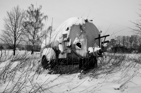 Josefia Re: Challenge 01/2015 • FarblosIch hab hier noch ne verwelkte Rose aus dem Garten und einen zugeschneiten Gülle-Anhänger (oder was es auch sein mag ^^)