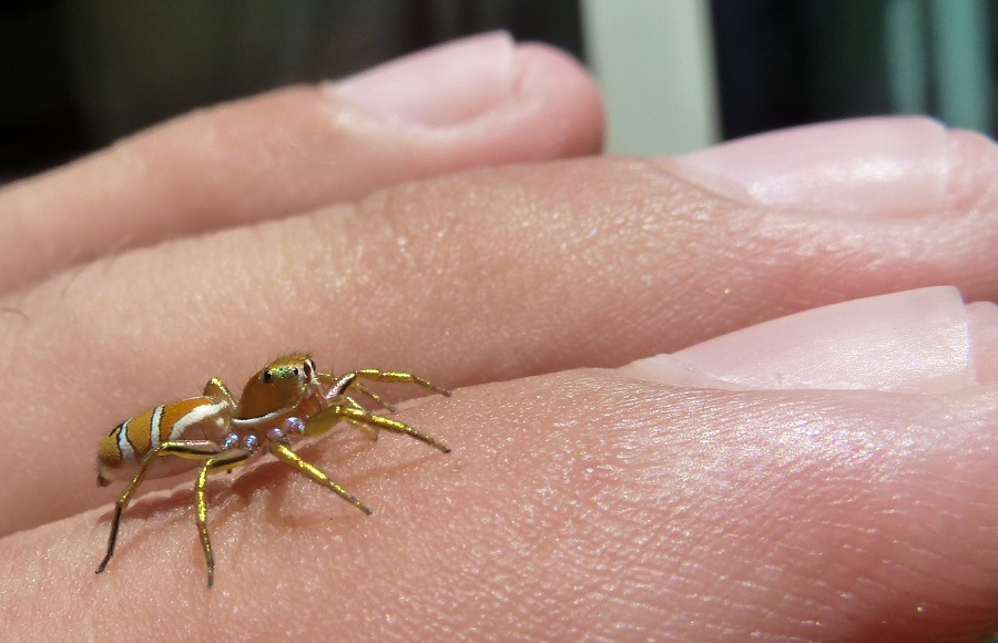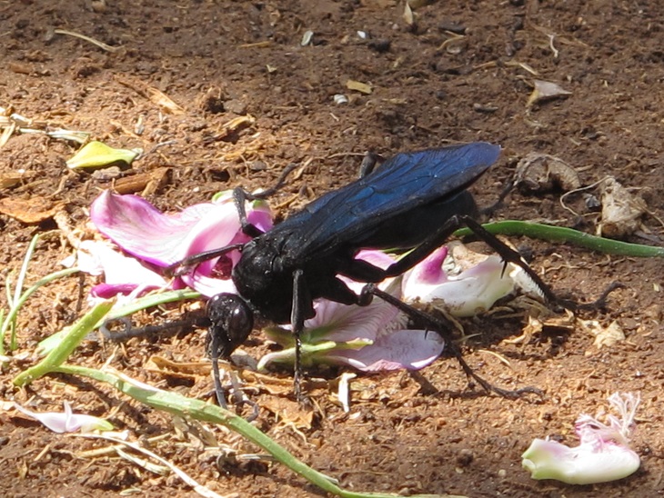Re: Challenge 02/2016 – Es ist nicht alles Gold, das glänztDer Käfer hat so schön geglänzt, dass ich ihn einfach fotografieren musste. Es ist laut unserem Reiseführer eine blaue Wespe, vor der wir uns in acht nehmen sollten. Andere waren ziemlich flink unterwegs auf den Blüten, diese krabbelte in einem Garten, sodass ich sie gut ablichten konnte. Aufgenommen habe ich sie auf dem Weg nach Aus/Namibia