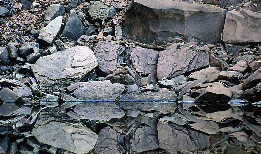 Re: Challenge 04/2018 • BruchstückeAuf einer Wanderung im Zions Nationalpark kamen wir an den Emerald Pools vorbei. Es war windstill. Die Felsbrocken spiegelten sich wunderbar:
