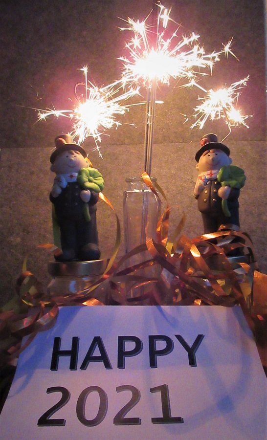 Auch ich verabschiede mich mit meinen beiden Glücksbringern auf dem Foto in ein hoffentlich bald wieder glückliches und normales Jahr.
