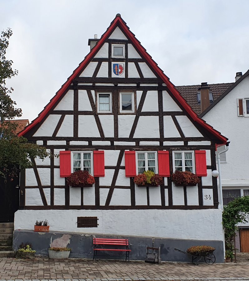 weil es so schnell war, hatte ich nur mein handy zur Hand Re: Challenge 10/2021 • Ohne Rot ist alles unbunt!Ich bin schon sehr oft an diesem Haus vorbeigegangen und habe es heute endlich einmal fotographiert.