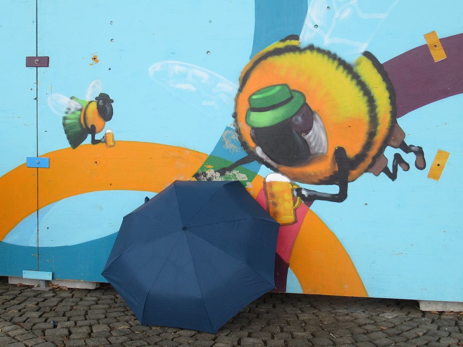 Spica Re: Challenge 02/2019 • I'm singing in the rain!In Bayern läuft z.Zt. das Volksbegehren Artenvielfalt "Rettet die Bienen". Da hat sich der blaue Schirm gleich auf die Suche gemacht und was hat er gefunden.....