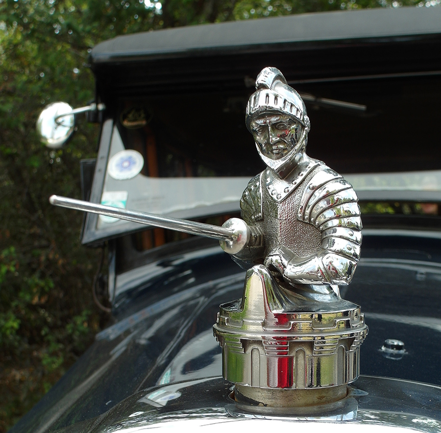 Dies ist die Kühlerfigur des Willys Knights Oldtimer. Ich kannte dieses Auto zuvor noch gar nicht. --------------------------------------------------- Re: Challenge 02/2016 – Es ist nicht alles Gold, das glänztEin "versilberter" Olivenbaum in Port de Soller auf Mallorca.