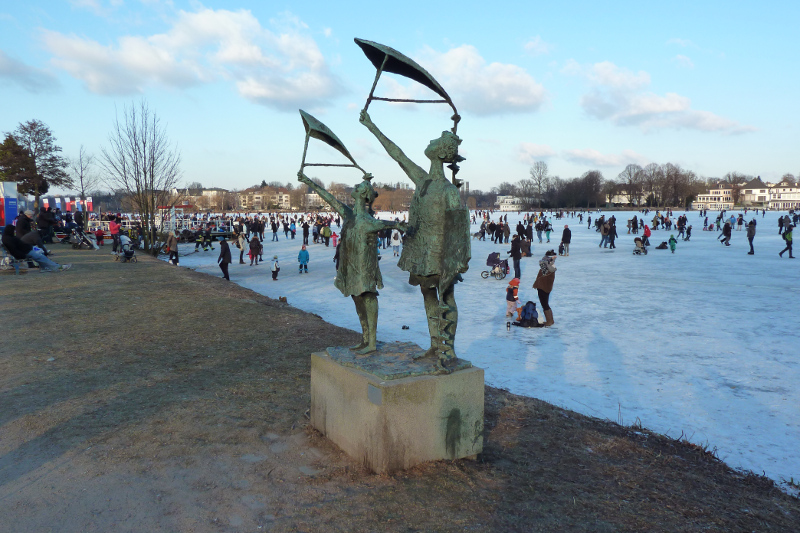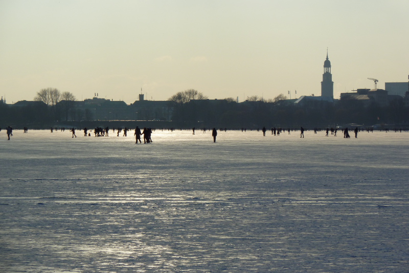 Re: Challenge 12/2016 • Schneeflöckchen, WeißröckchenDa zur Zeit die Motive von Lady Winter mal wieder auf sich warten lassen, blicke ich zurück auf das Jahr 2012, als die Alster zugefroren war und man bei wunderschönem Sonnenschein einen Spaziergang über das Eis machen konnte.