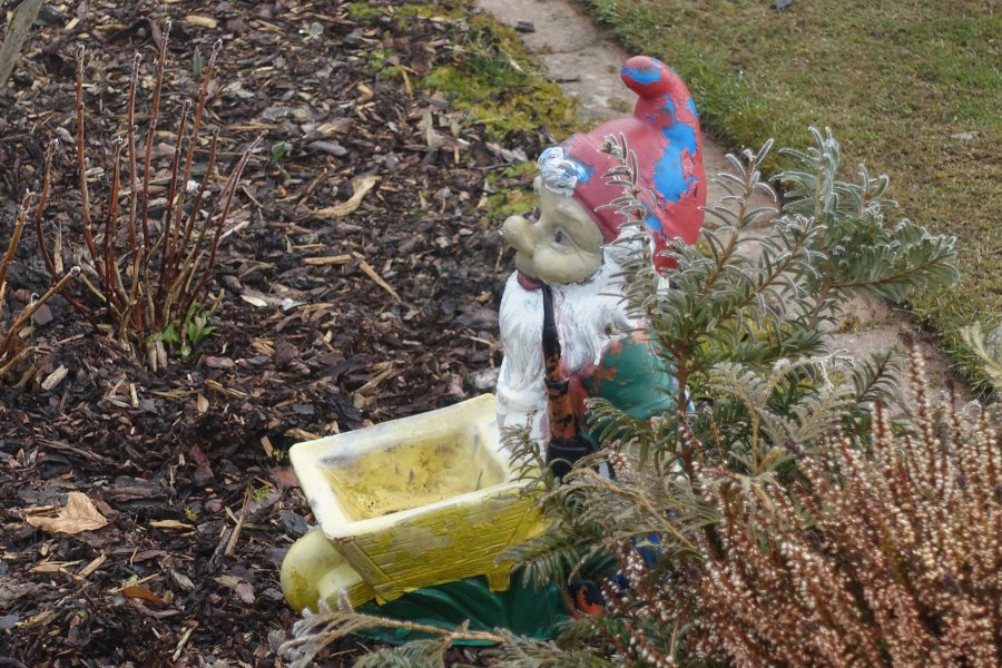 Re: Challenge 03/2021 • Zwei Mal täglichEinen habe ich noch, an Kleingartennachbars Gartenzwerg bin ich heute auch schon zweimal vorbeigekommen, und zwar bei frostigen Temperaturen und bei Sonnenschein.