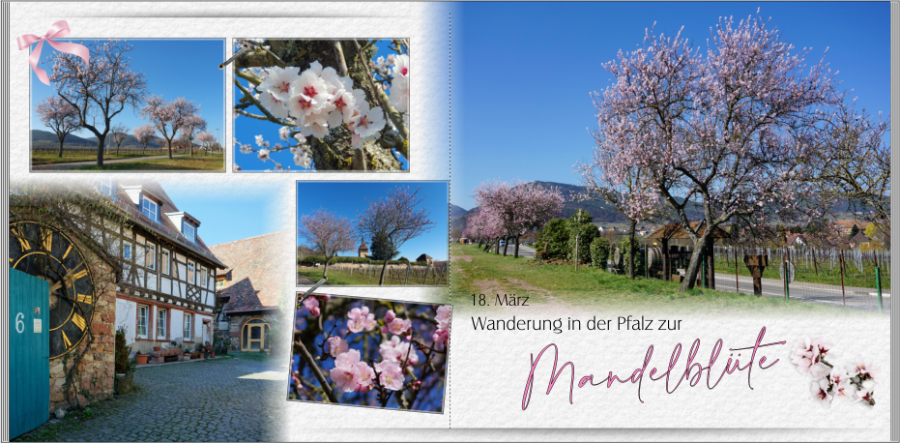 Re: Die Jahrbuchchallenge 2025 - MärzAm 18. März war ich in der Pfalz wandern. Die Mandeläume standen zu diesem Zeitpunkt noch nicht in Vollblüte- es war trotzdem ganz wunderschön.