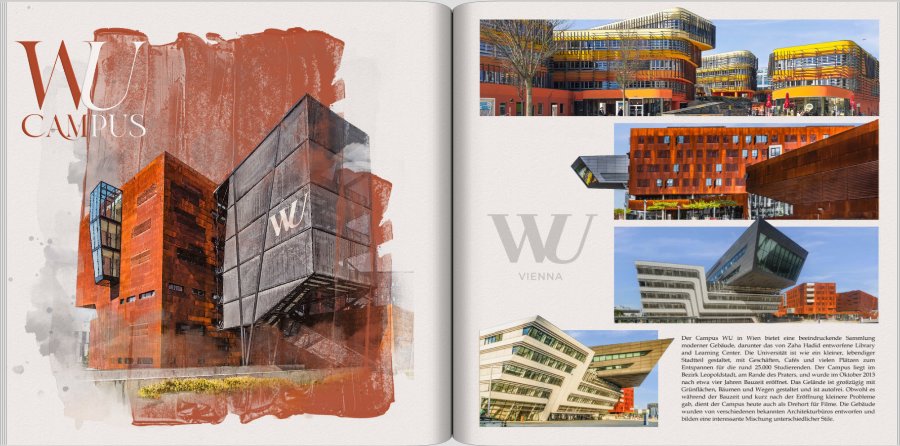Re: Die Jahrbuchchallenge 2025 - AprilDurch meinen Unfall gibt es diesen Monat sonst keine Ausflüge und Fotos. Auf dem Weg zum Arzt parken wir in der Tiefgarage der WU und spazieren anschließend durch das wirklich beeindruckende Areal der Wirtschaftsuniversität.